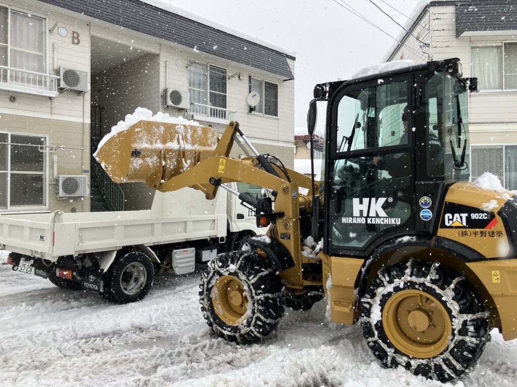 冬季の除排雪・屋根の雪下ろしも承っております。当社では小型のタイヤショベルを所有しておりますので、狭所の除排雪もお任せください!